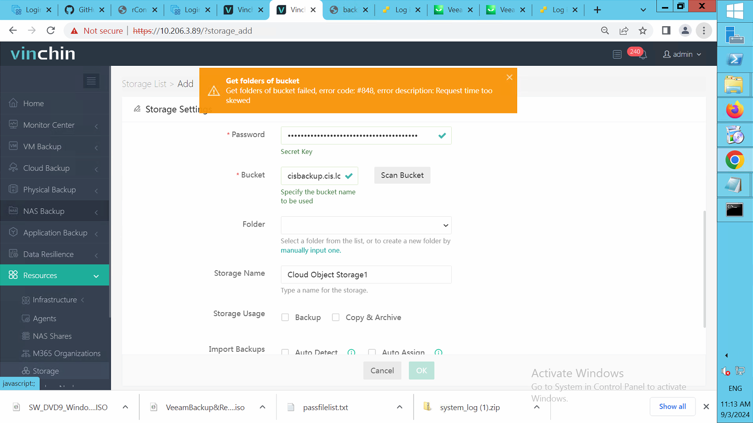 After syncing, the bucket might still not be added immediately — just wait for a while or restart the system, then try again. That worked for me and solved the issue.