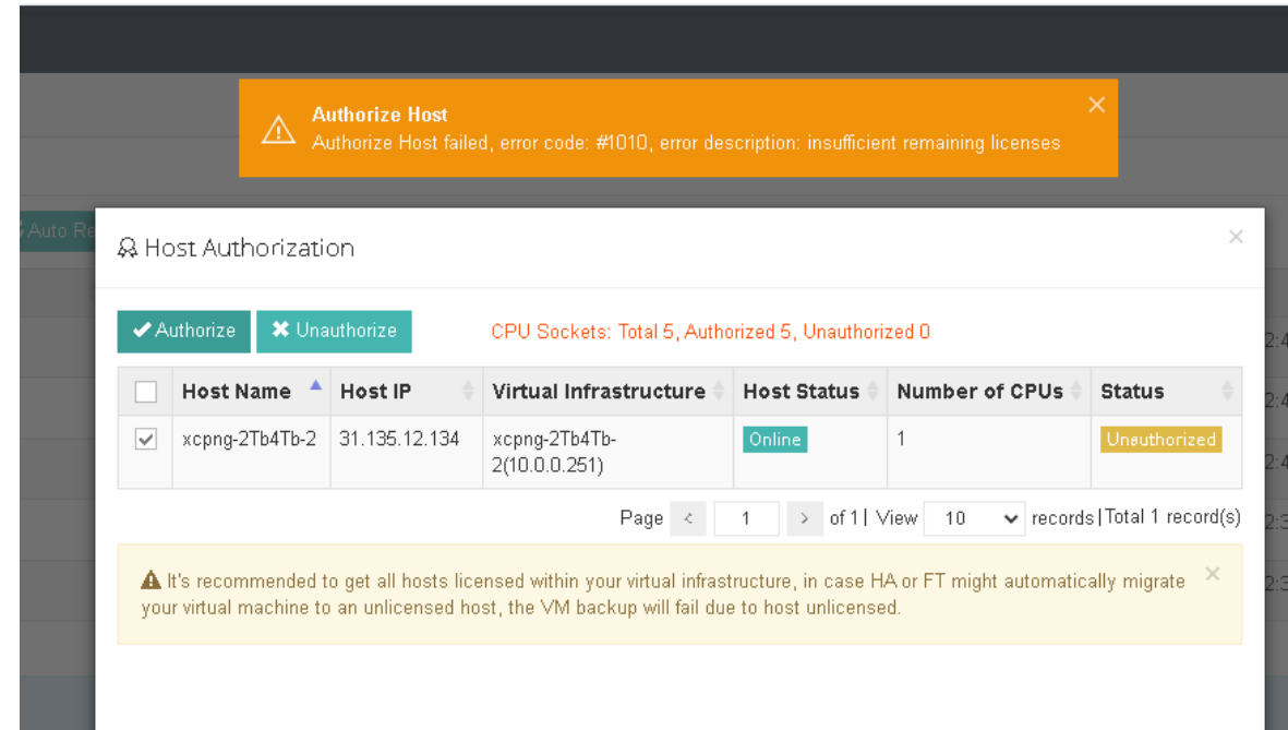 After rebooting the virtualization platform it registered a new UUID in the backup system, but the old UUID still occupies a license slot, so the licensed count did not change.