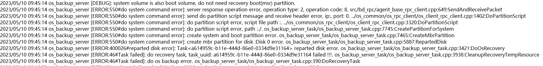 From the client WinPE logs, it can be seen that the target host does not have enough disk space to meet the original machine’s recovery requirements. You can check the WinPE system log files (path: Windows\System32) using the type diskpart_log