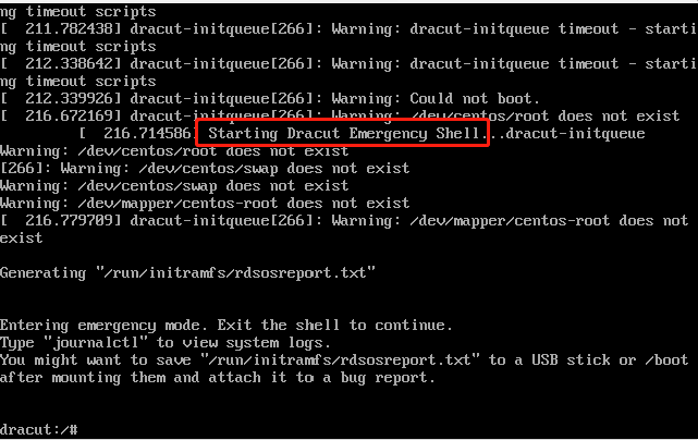 I'm trying to migrate a CentOS VM from VMware to Hyper-V using our backup system (v7.2.0). The restore completes, but the VM won't boot - it gets bricked and drops into Dracut Emergency Mode.