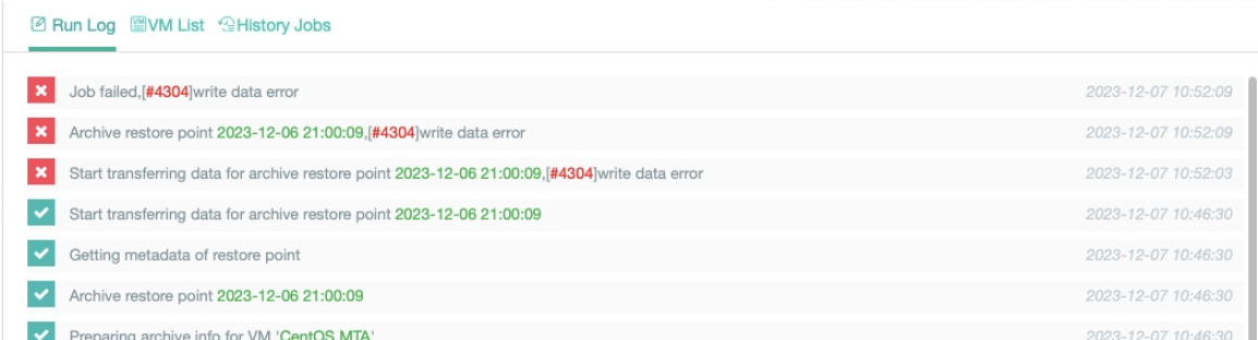 I'm facing an issue while trying to archive backup data to Wasabi. The process fails with error #4304 write data error on the front end. The backend logs show a more specific error: ListBuckets error: AccessDenied, Access Denied with address.