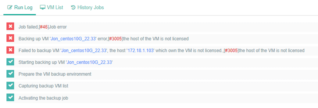 After creating a backup task, an error indicating the virtualization platform is deauthorized causes the backup to fail (same error in v6.7 and v7.0).