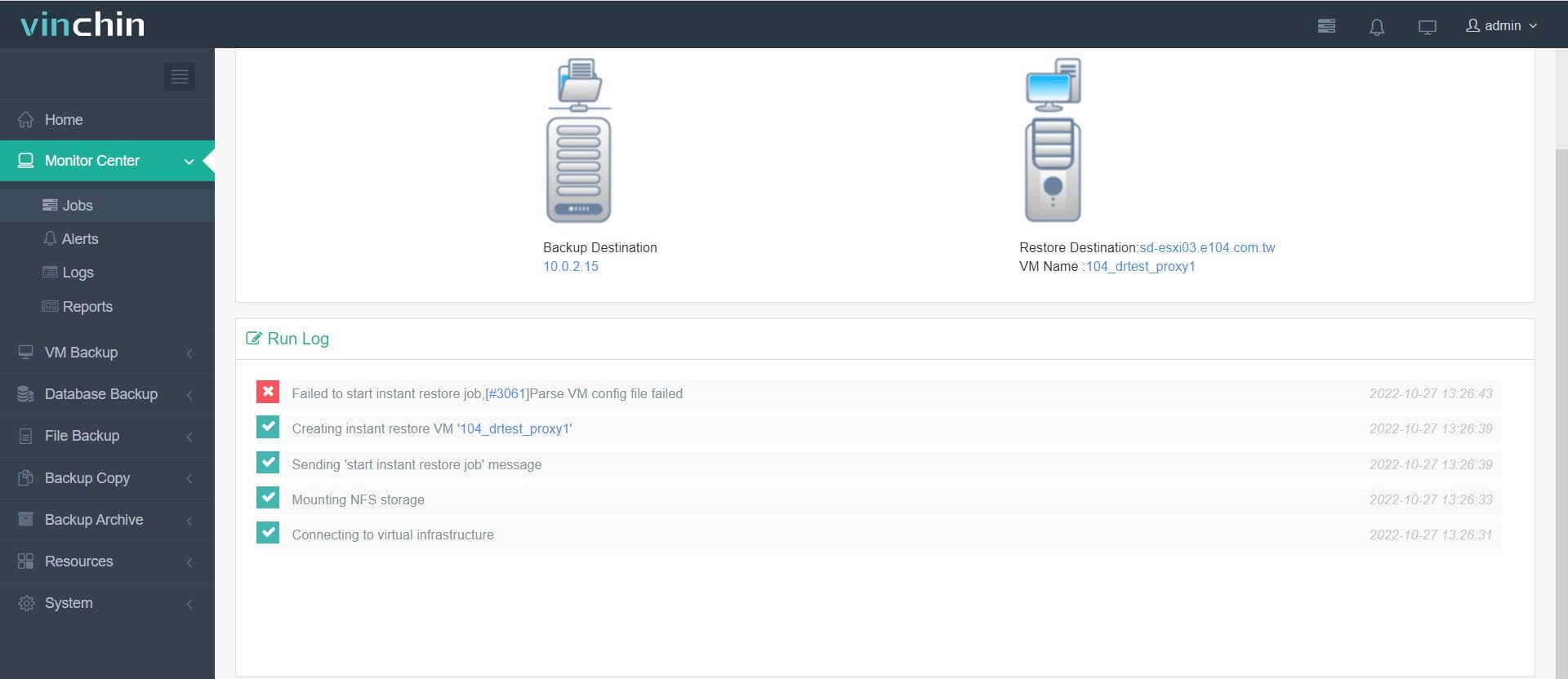 Failed to start instant restore job, [#3061] Parse VM config file failed