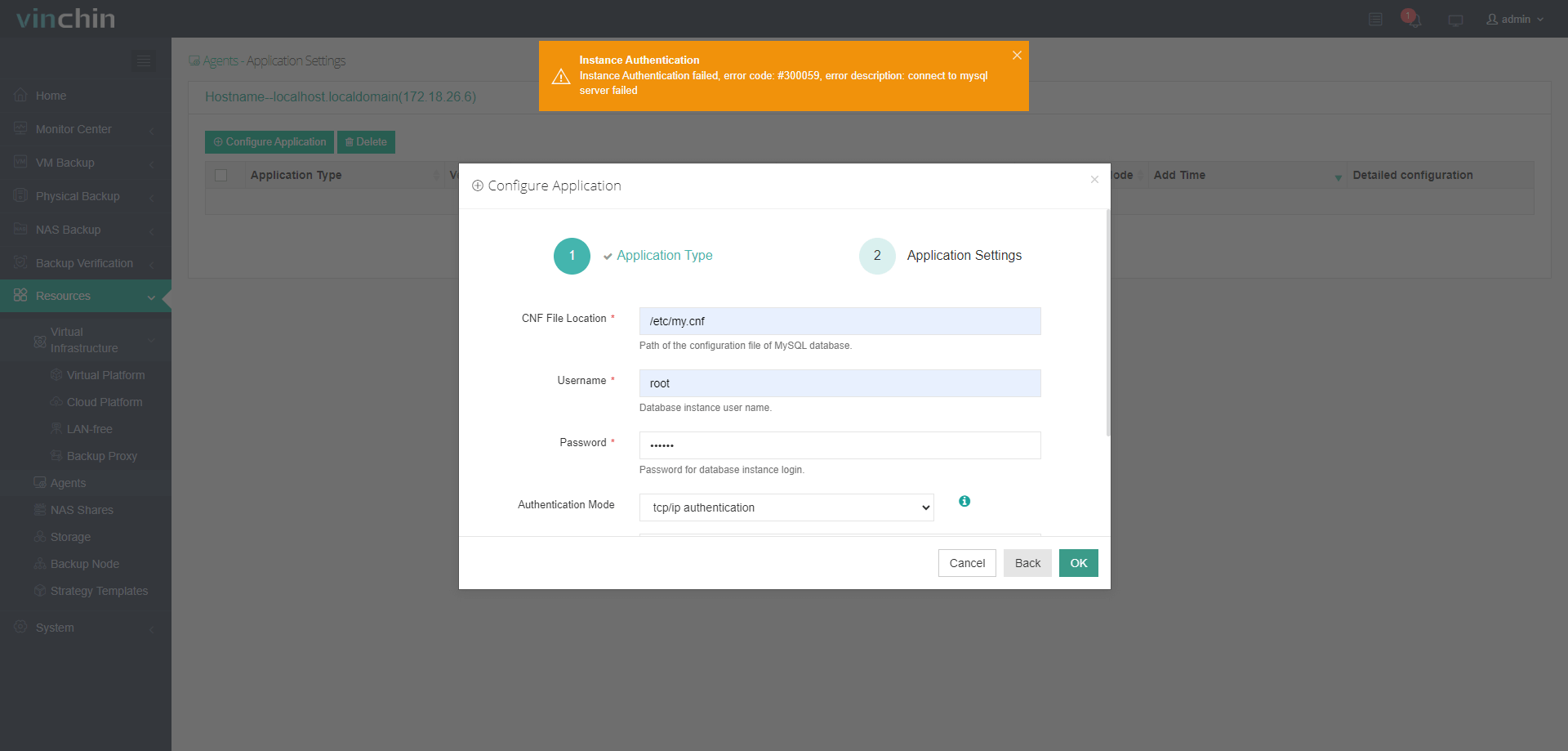 Adding the database failed is typically caused by incorrect authentication credentials (invalid username or password) provided during the configuration process. Additionally, it may occur if the current database user lacks the necessary privileges or permissions required for Vinchin to access and manage the database instances effectively.
