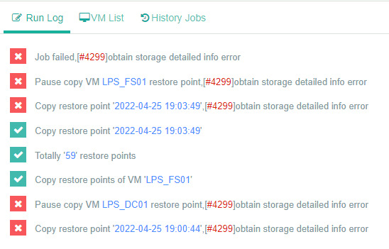 Job Failed, #[4299]obtain storage detailed info error