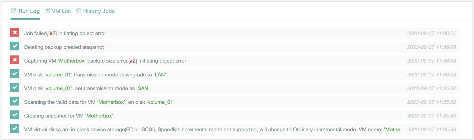 Capturing VM 'xxxx' backup size error,[#2]Initiating object error